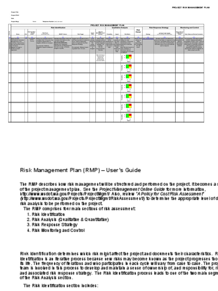 Project Risk Management Plan Template Excel