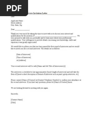 Invitation letter for a scheduled interview.